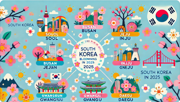 다음은 2025년 지역별 벚꽃 개화 예상 시기 표이다: